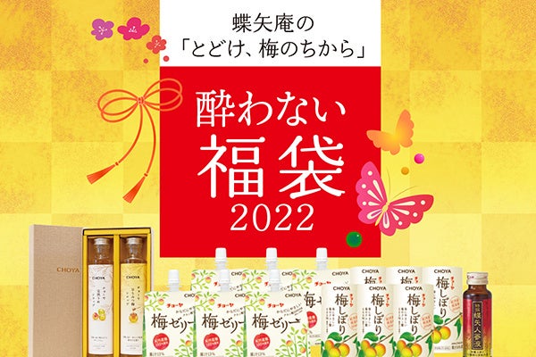 チョーヤ梅酒株式会社(本社:大阪府羽曳野市、社長:金銅重弘、以下チョーヤ)は、通信販売「蝶矢庵」にてノンアルコールの酔わない福袋2022「蝶セット」を50セット限定で2022年1月1日(土)から新発売いたします。