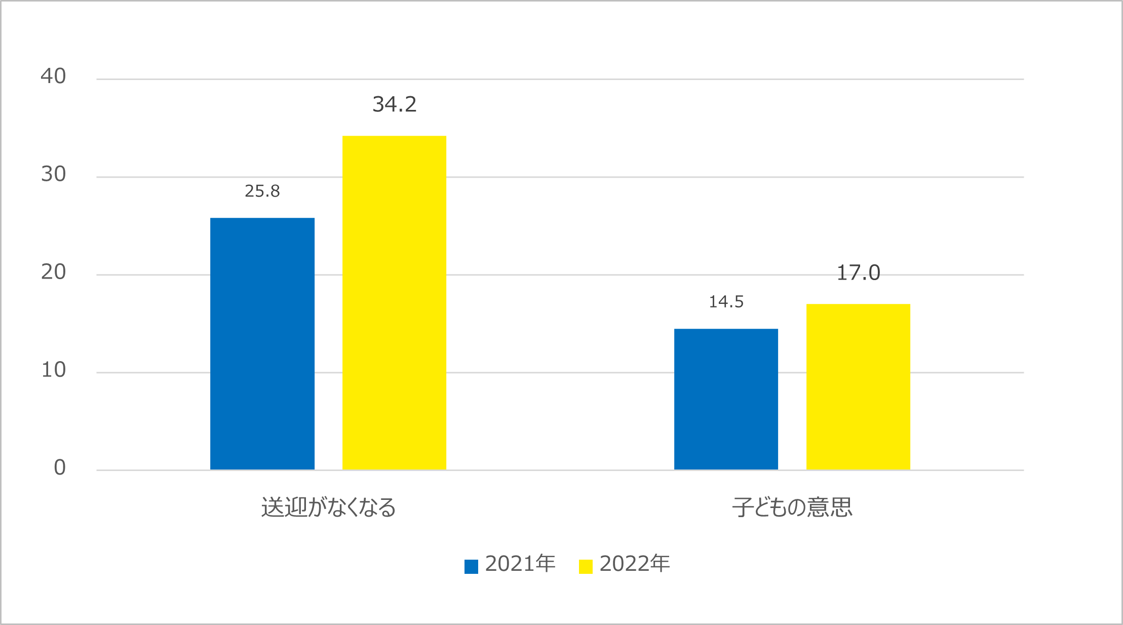 | 1位 | 送迎がなくなる | 34.2% | 1位 | 家から近い | 27.4% |