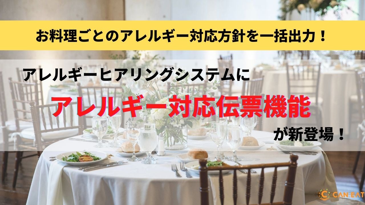CAN EATのアレルギーヒアリングシステムに「アレルギー対応伝票機能」が新登場!ゲスト一人ひとりの食事制限への対応方法を料理ごとに登録・出力可能に