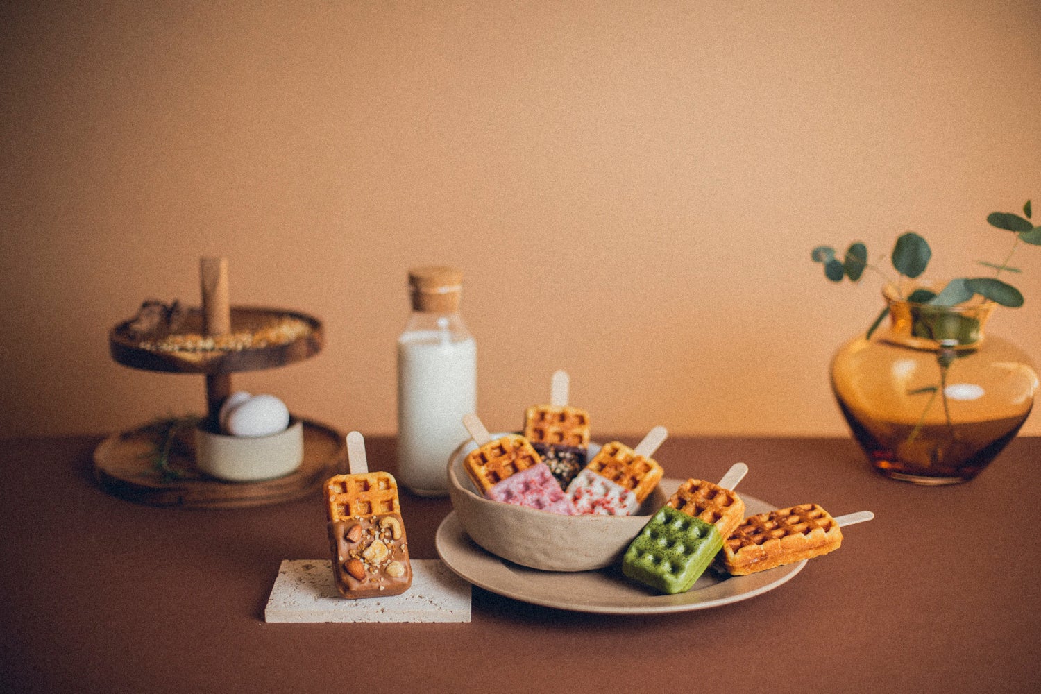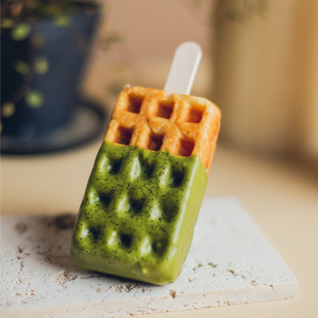 ワッフルにスティックが刺さっているので、食事中でも手が汚れることがありません♪