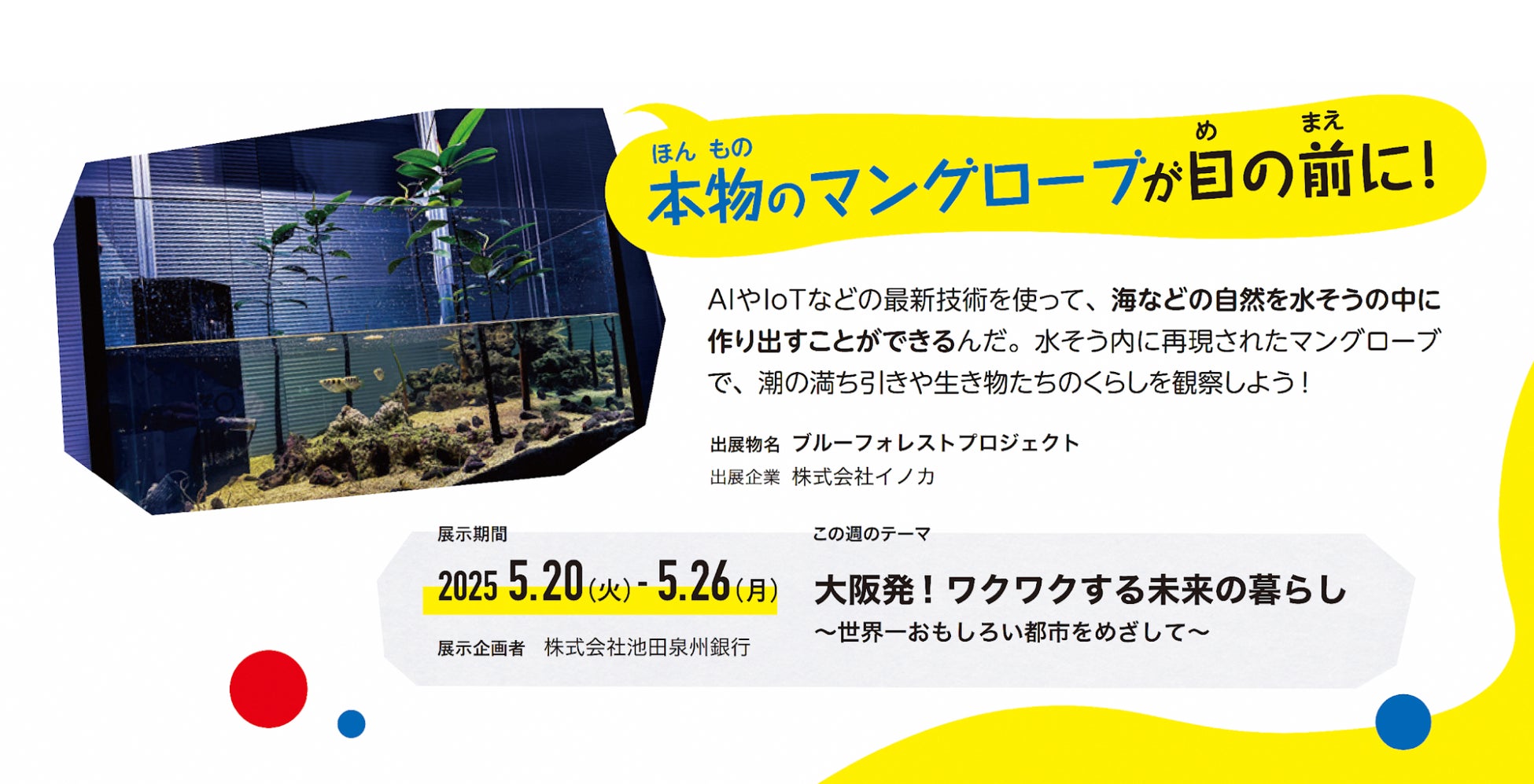 イノカは、「大阪超越文化横丁 (GUTSU GUTSU CHALLENGE)」が目指す「面白い未来」「ワクワクする未来の暮らし」の具体的な提案として、「ブルーフォレストプロジェクト マングローブ生態系を目の前で観察しよう!」と題した展示を実施いたします。