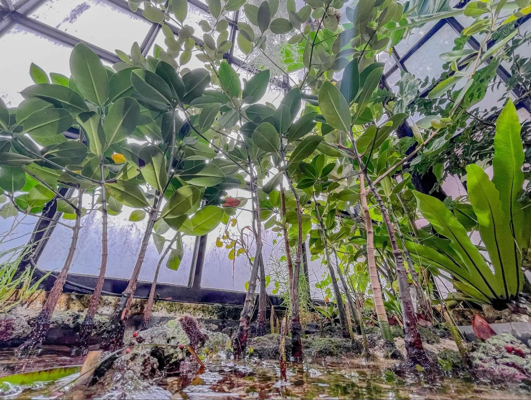 「環境移送技術®︎」によって再現されたマングローブのミニ生態系を展示。オヒルギ、メヒルギ、ヤエヤマヒルギなど、種によって異なる根の形状や葉の特徴、そこに集う生き物たちの様子を間近でご覧いただけます。マングローブの驚くべき適応戦略と生物多様性の豊かさを体感してください。