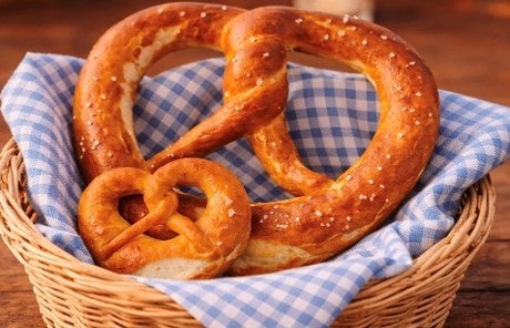 【パン料理】オクトーバーフェストロゴ入りプレッツェル、顔より大きいプレッツェル