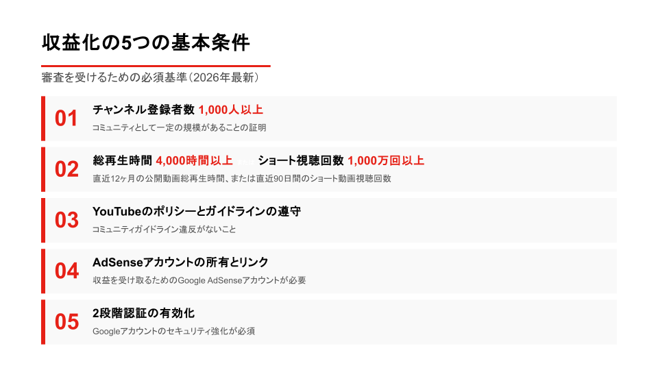 ◼︎YouTube収益化の基本条件とは?