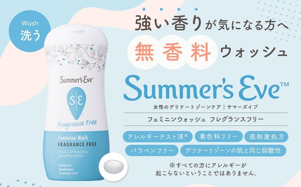 強い香りが苦手な方や、敏感肌が気になるママ・お子さまにも!デリケートケアブランド「サマーズイブ」から、初の無香料タイプ「フェミニンウォッシュ フレグランスフリー」が発売開始!