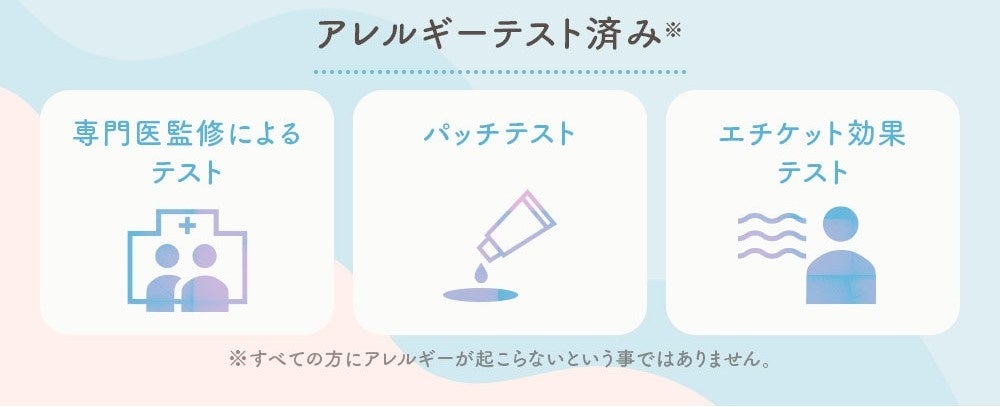 専門医監修によるテスト、パッチテスト、エチケット効果テストを事前に実施していますので、毎日使いにぴったりです。