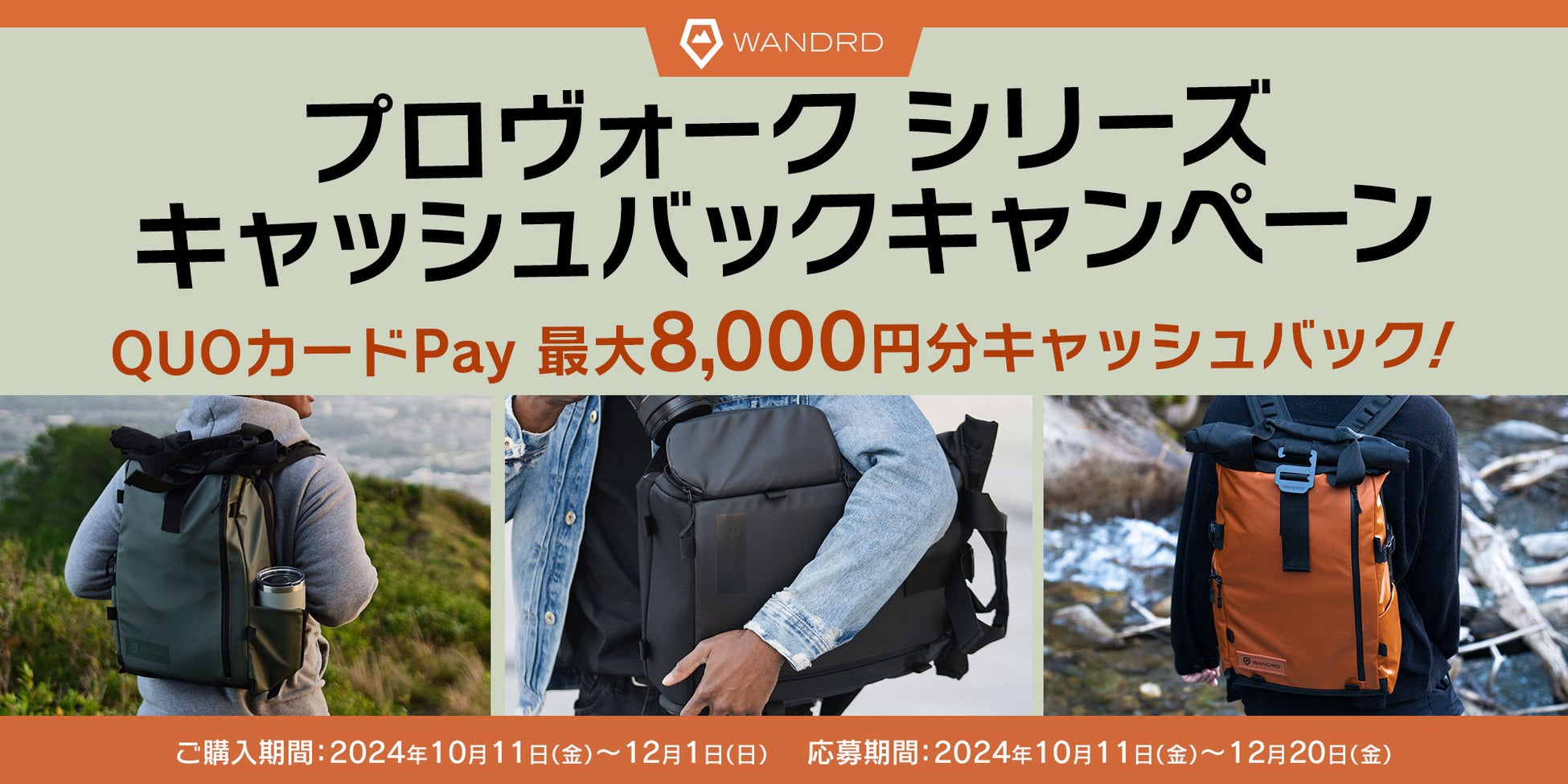 2024年10月11日(金)より、WANDRD(ワンダード)「プロヴォークシリーズ キャッシュバックキャンペーン」を展開します。対象商品ご購入で、最大8,000円分をキャッシュバック!