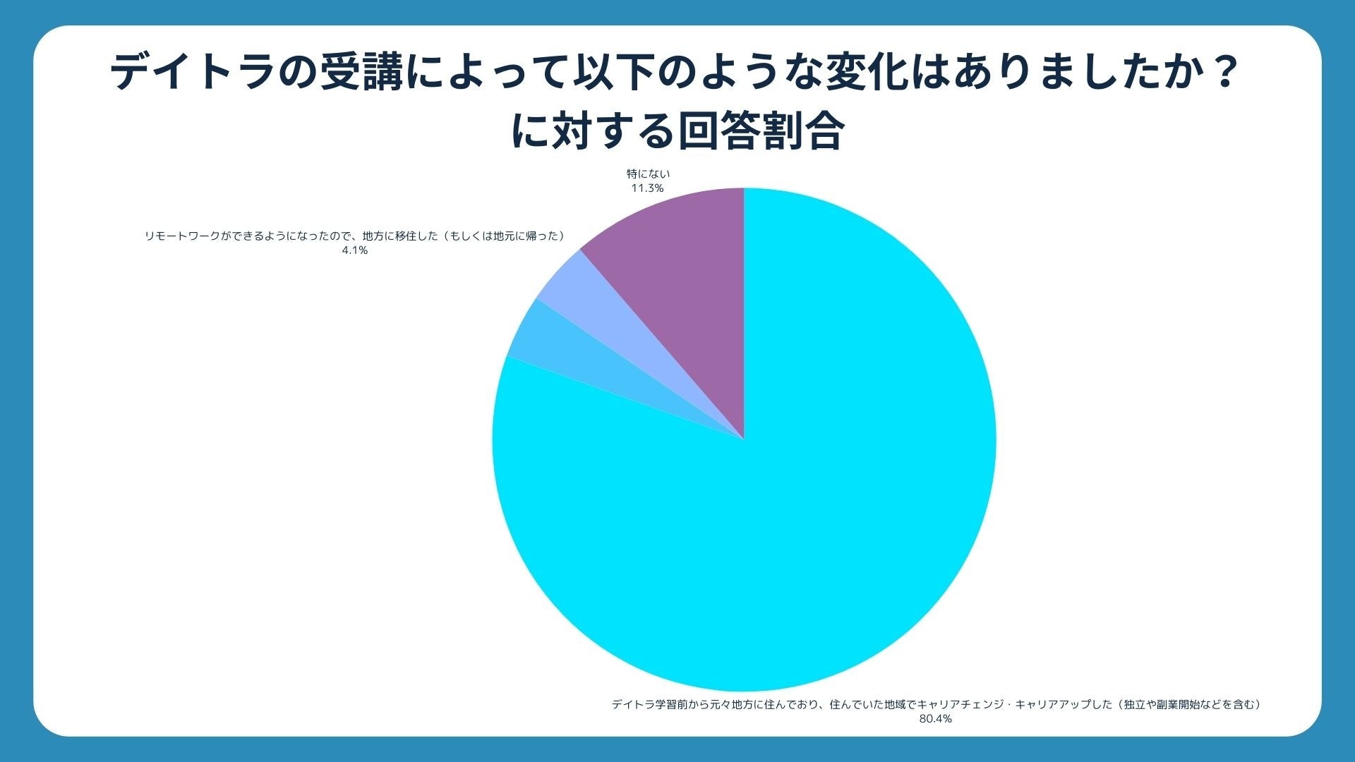 「デイトラ学習前から元々地方に住んでおり、住んでいた地域でキャリアチェンジ・キャリアアップした(独立や副業開始などを含む)」と回答した方が全体の80.4%