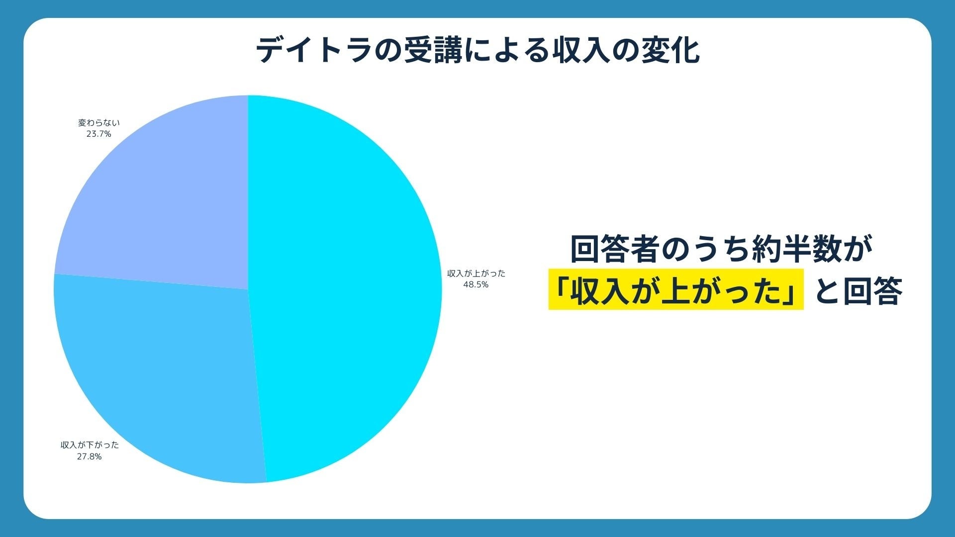 ・48.5%が「デイトラの受講により収入が上がった」と回答
