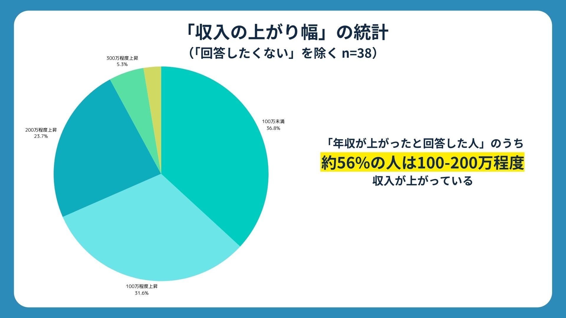 約56%の人が、結果として「100-200万円程度の年収の上昇」を達成している
