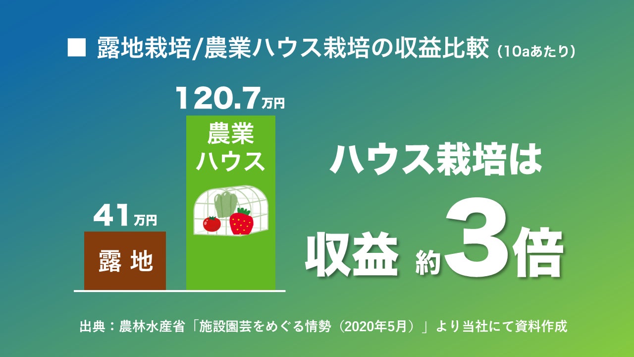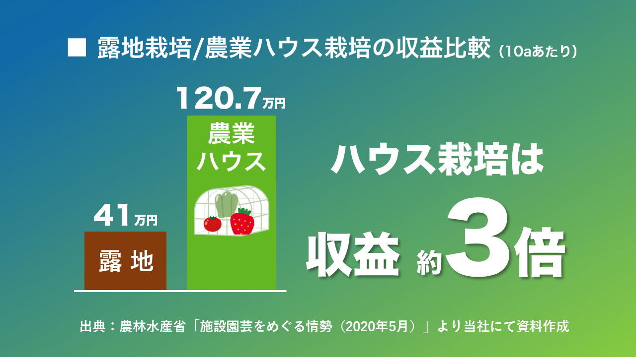 収益力約3倍のハウス栽培参入が「ネクシィーズZERO」なら自然故障や台風による水災にも対応するオールインワンサービスで安心
