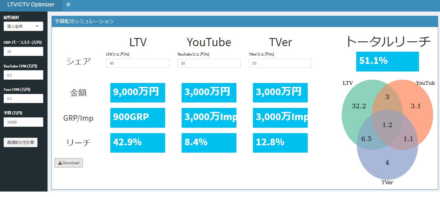 そういった分析を進めるなか、キャンペーン出稿後の効果検証だけではなく、出稿前のプランニングにもREVISIOの注視データを活用したいというご要望をいただき、今回地上波とCTVの最適な予算配分をシミュレーションできるツール「CTVリーチシミュレーター」を開発しました。