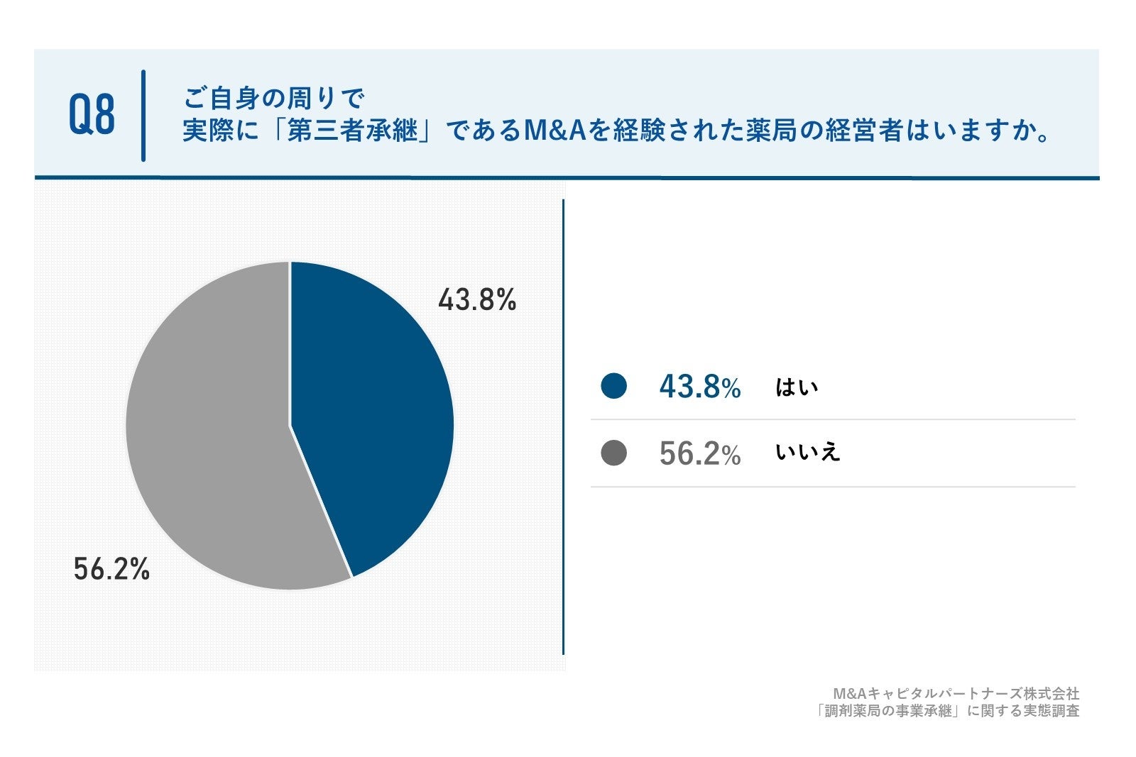 -43.8%が、身の周りで実際にM&Aを経験した薬局の経営者がいると回答-