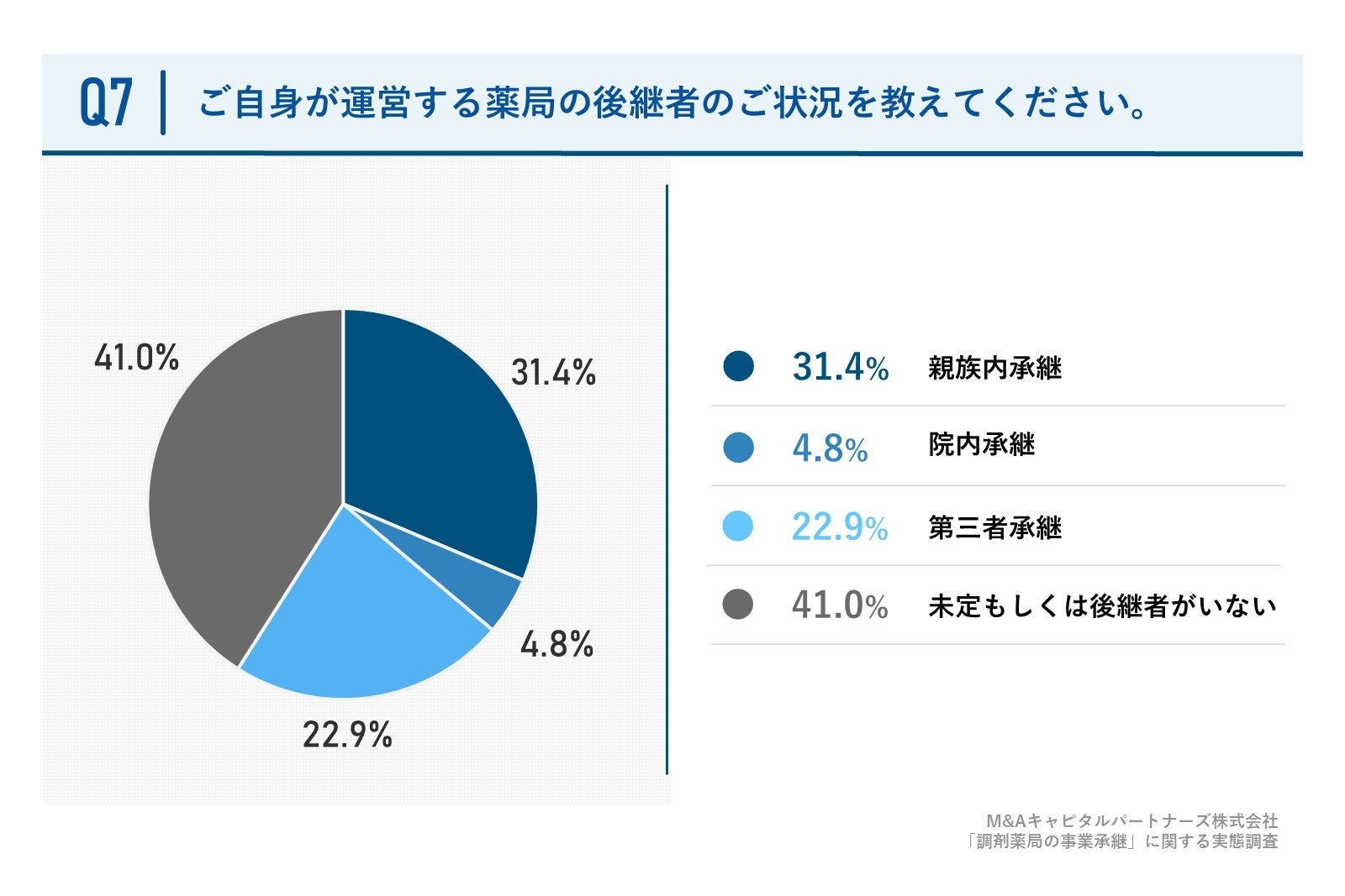 -現在の薬局の後継者の状況、31.4%が「親族内承継」、22.9%が「第三者承継」-