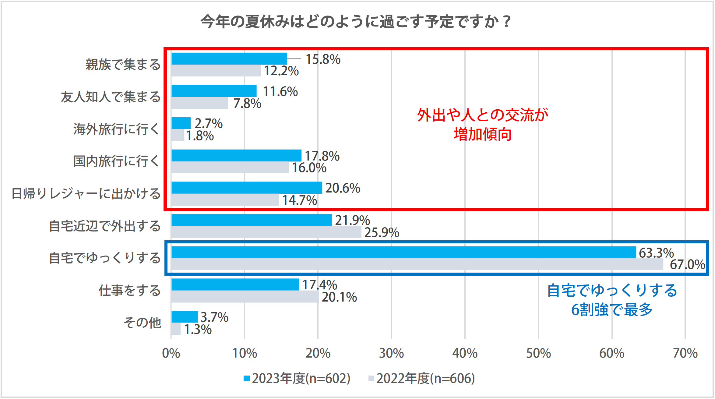 〜今年の夏休みは旅行や親戚・友人知人との集まりが増加、外出や人との交流が活発化か〜