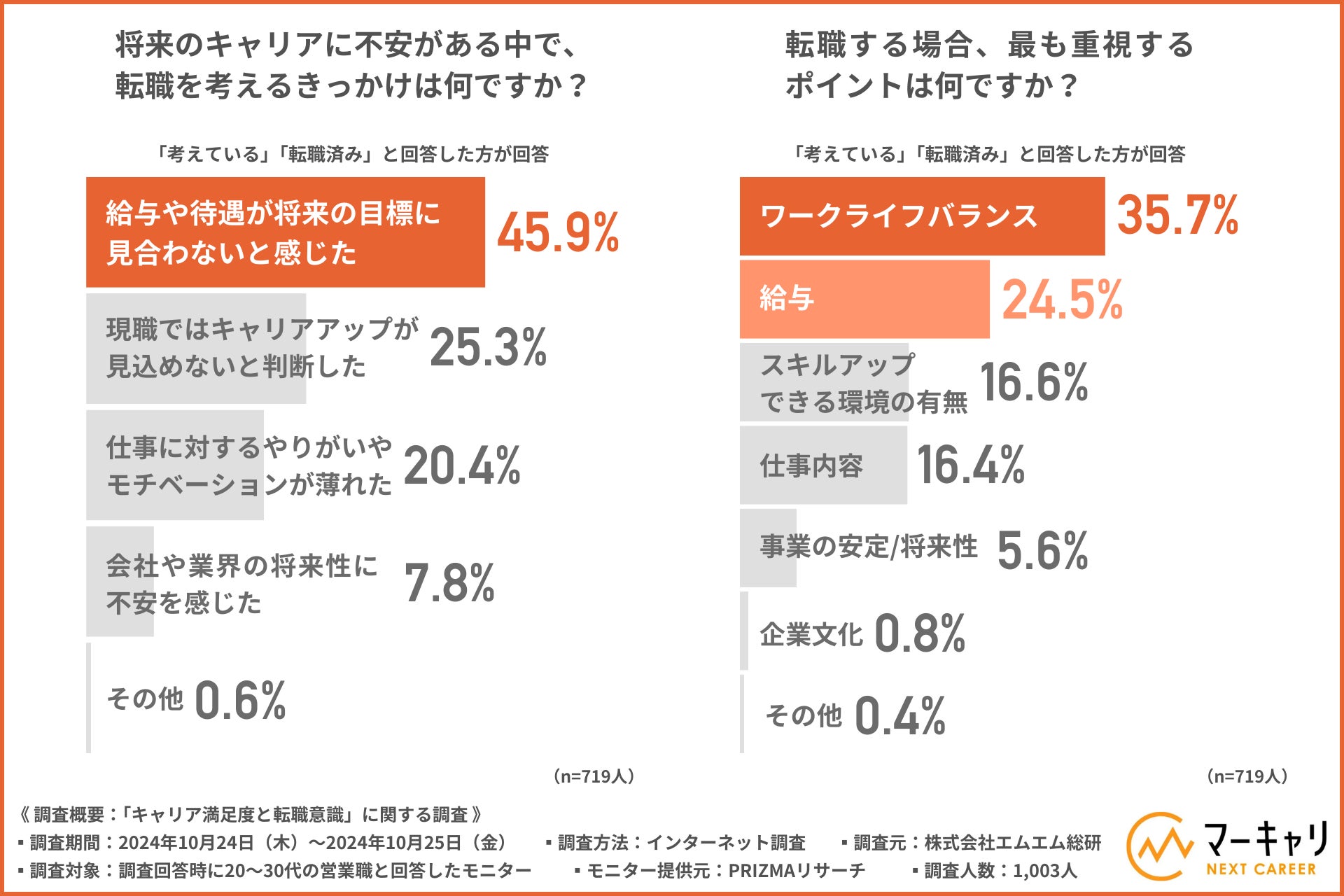 待遇やキャリアアップの先行き不安が転職を検討する主な要因となっているようです。