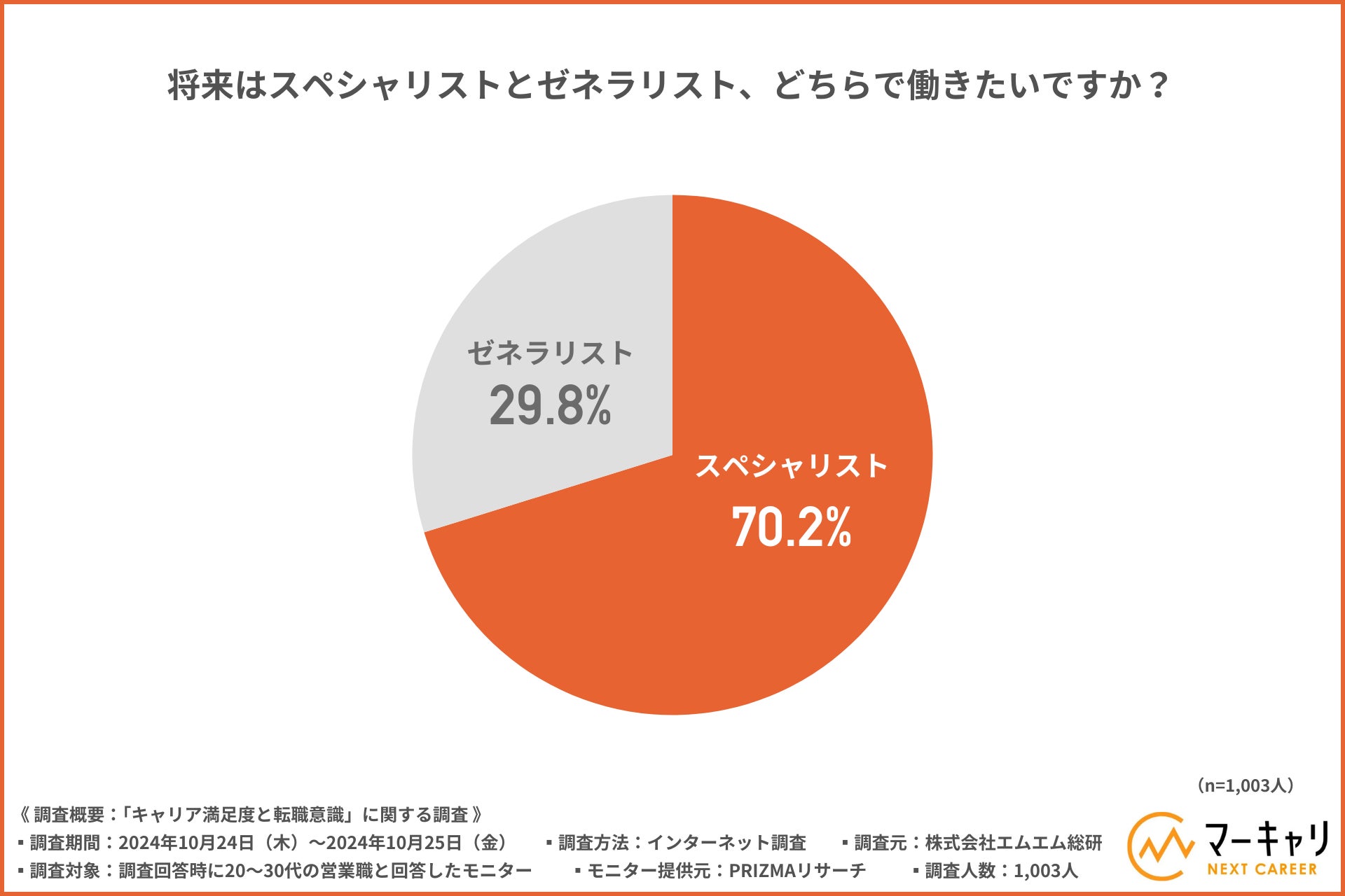 「将来はスペシャリストとゼネラリスト、どちらで働きたいですか?」と質問したところ、約7割の方が『スペシャリスト(70.2%)』と回答しました。