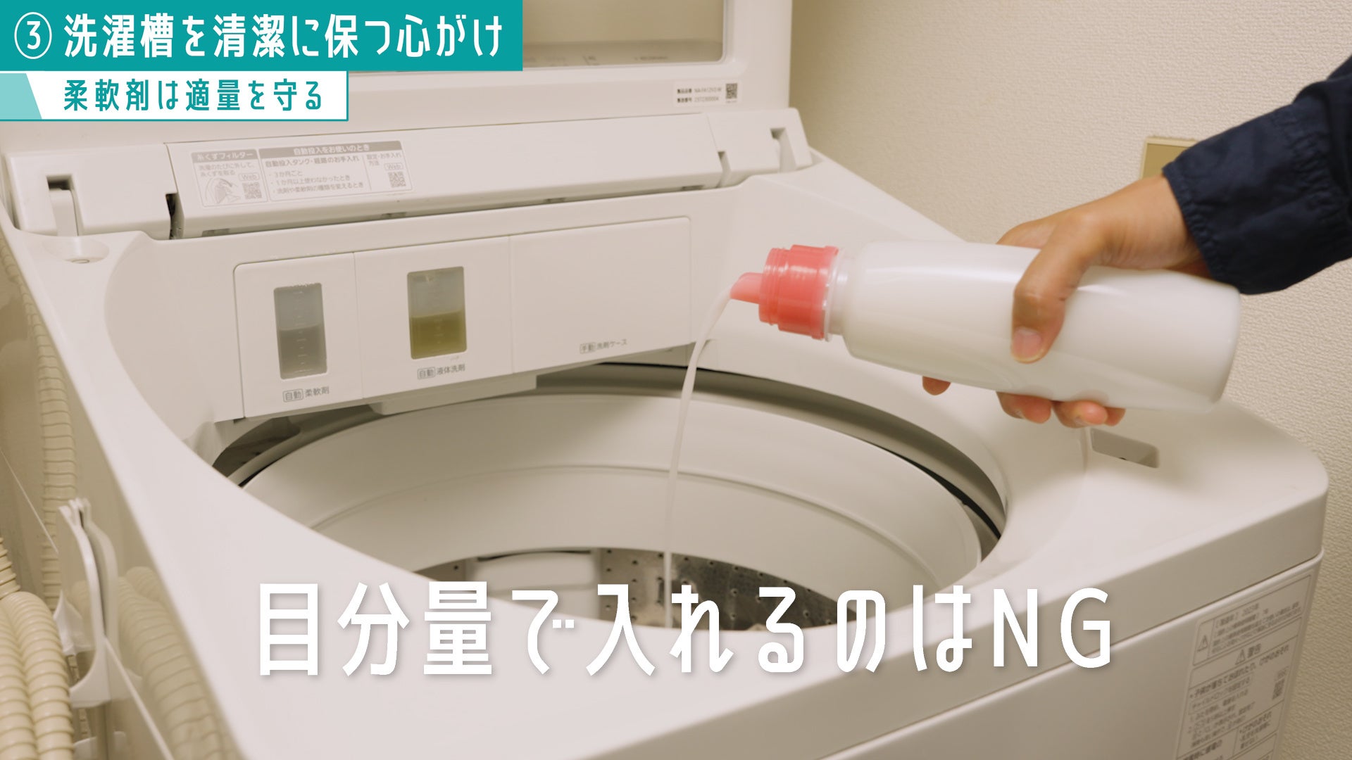 ③ 柔軟剤は適量を守って目分量でいれない。