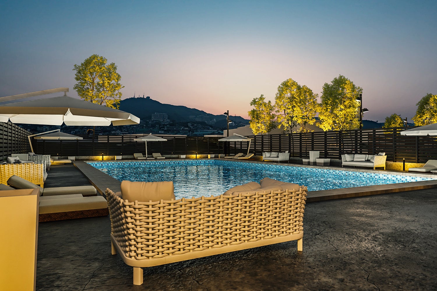 プールサイドでくつろいで頂けるよう改装を施した小学校プールは、ナイトプール(5~9月)も楽しんで頂けるラグジュアリー仕様に。体育館ではバスケットボールやドッジボールなどボール遊びもお楽しみください。