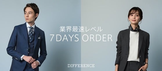 オーダースーツブランド「DIFFERENCE(ディファレンス)」では、お客様のご要望にお応えして最短1週間でお渡し可能な「7DAYS ORDER」の注文枠を大幅に拡大しました。