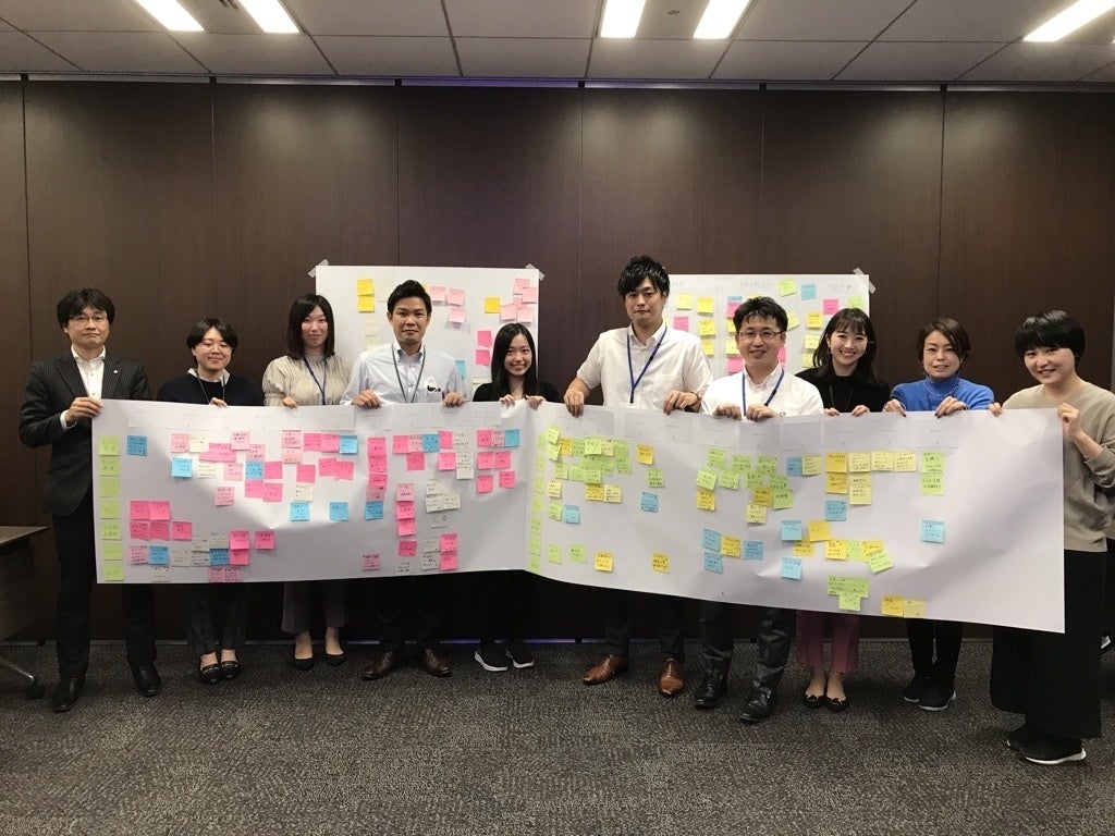 建設にあたっては、2021年に自社グループ内で有志社員による社内プロジェクトを立ち上げました。20~30代の若手社員を中心に、幅広い年代の社員が会社や部門を越えてプロジェクトメンバーとして参画し、ワークショップを重ねて、新しいオフィスで実現したい行動やコミュニケーションについて意見を出し合い、オフィスのコンセプト設計から検討を進めております。