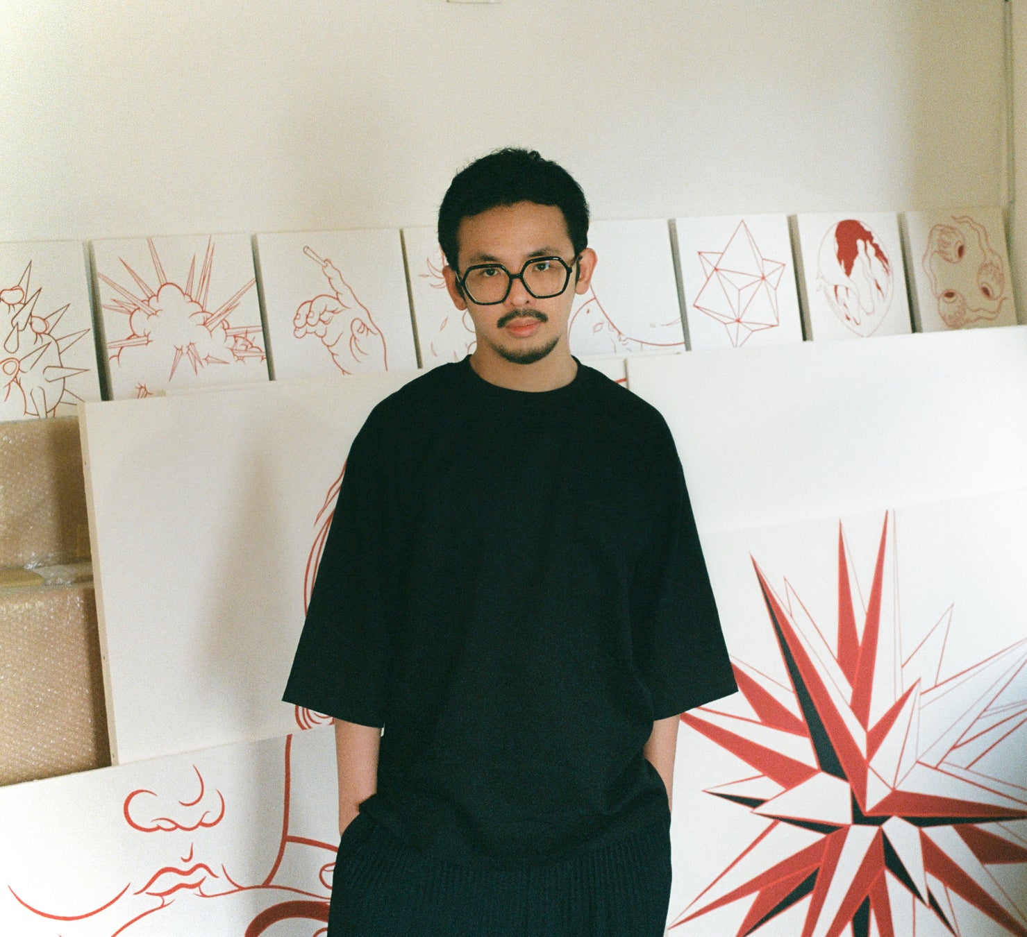 1998年マレーシア、ベナン生まれ。現在は東京を拠点に制作。和紙に岩絵具で描かれる繊細な絵画作品や、陶芸作品、インスタレーション、写真を通じて、幼少期から現在に至るまでのクィアとしての経験や宗教との葛藤、記憶と癒やしのプロセスをテーマに制作を続けている。マテリアルに対する細やかなまなざしと、東アジアの絵画・工芸の技法を取り込みながら展開される作品は、メンタルヘルス、ジェンダーやセクシュアリティをめぐる個人的な物語と、普遍的な「生の不安/希望」を静かに繋ぎ合わせる。