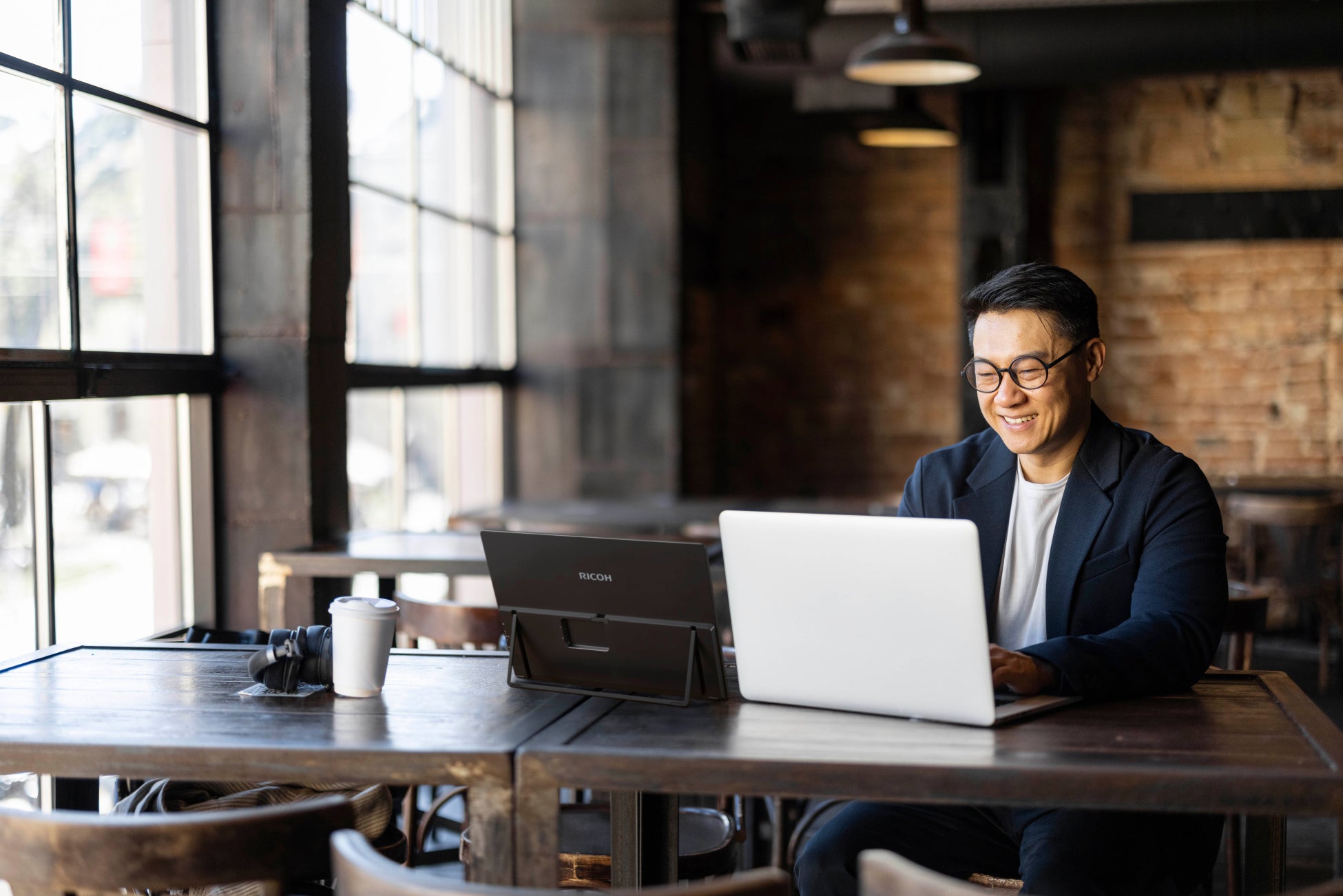 ※1:15.6inch タッチパネル付きポータブルモニターにおいて(150BWは15.6inch タッチパネル付きバッテリー搭載ポータブルモニターにおいて)。 2022年11月現在。リコー調べ
