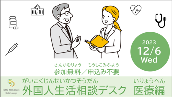 外国人生活相談デスク・医療編 「TOKYO WORLD GATE CoCo Lounge」にて12月6日開催