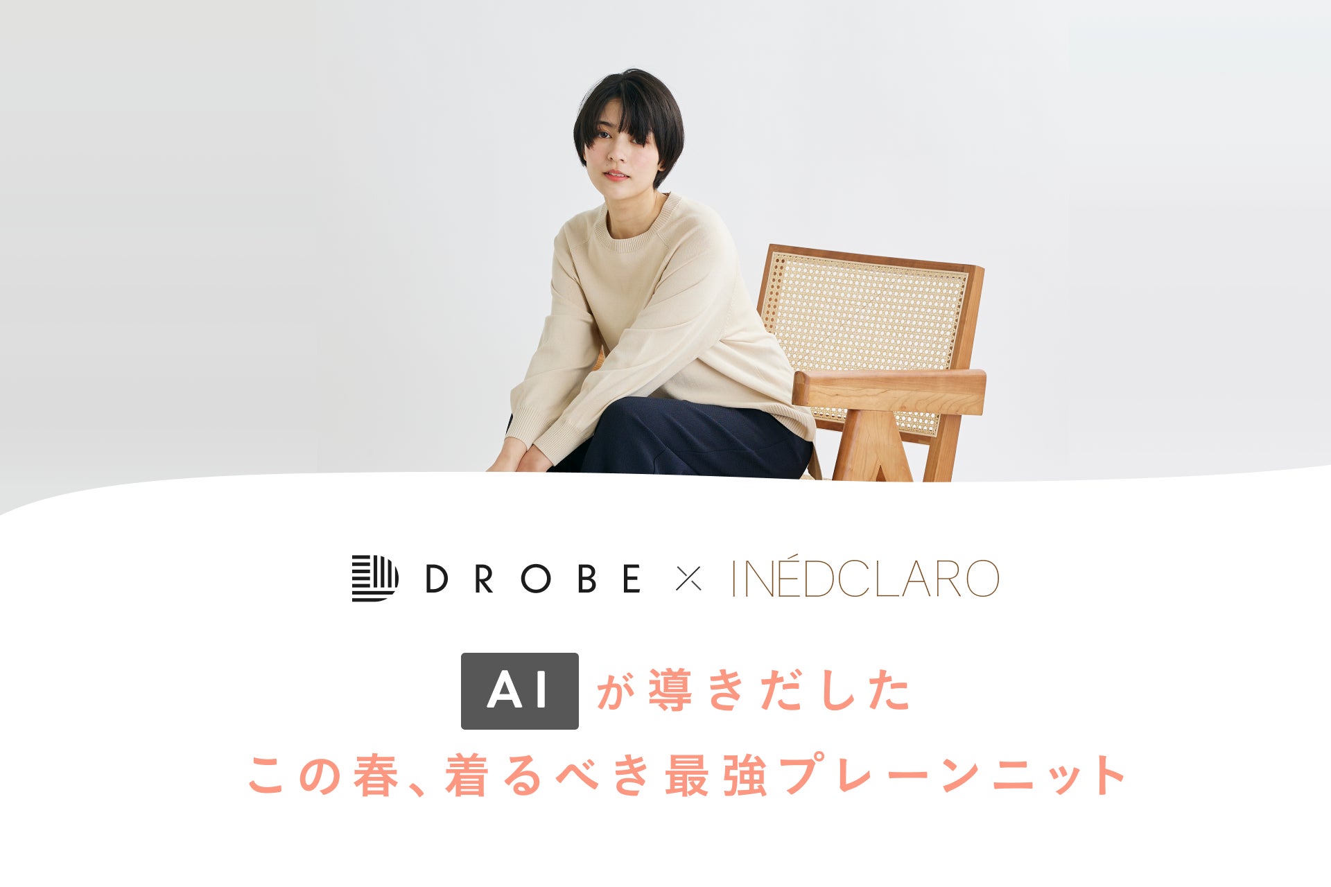 パーソナルスタイリングサービスのDROBE ニューベーシックを提案する女性向けブランド「INÉD CLARO」とコラボし、独自AIを開発に活用した「極上なめらか春ニット」を販売開始
