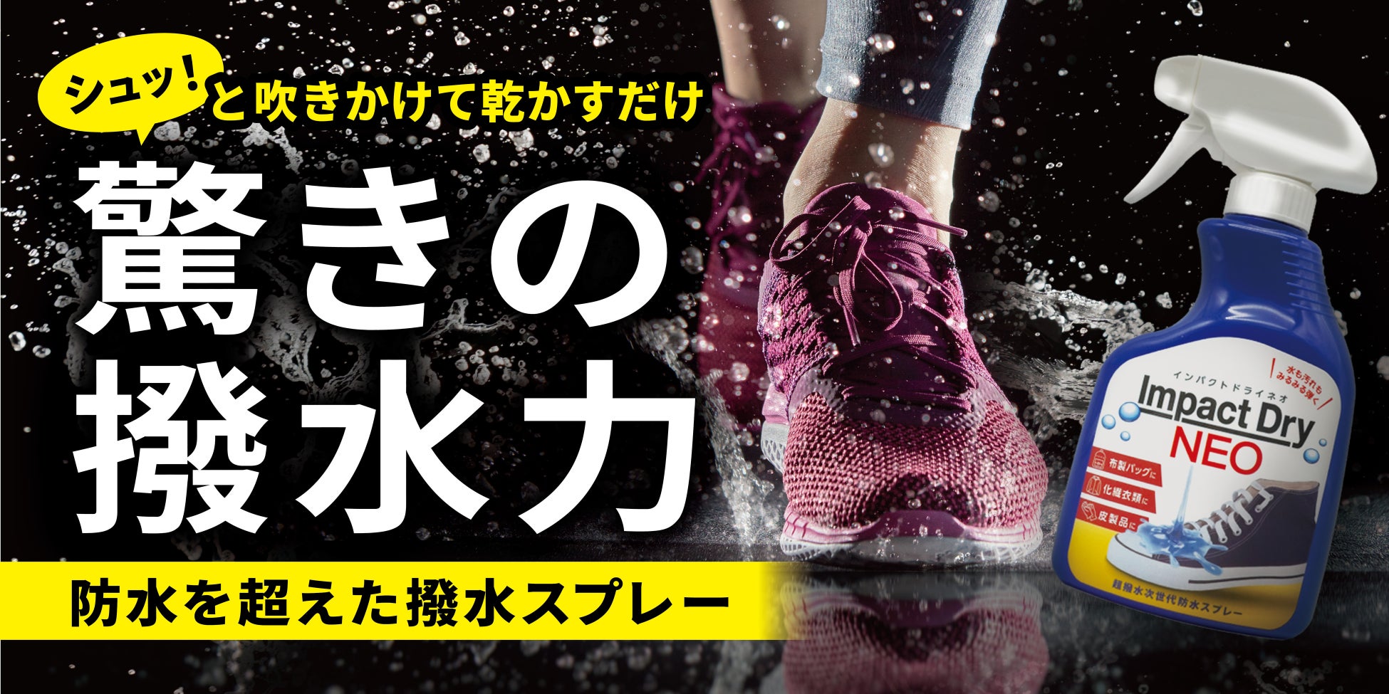 靴やスニーカー、バッグ、帽子など、さまざまな素材やアイテムに使用可能です。突然の雨から大切なアイテムをしっかり守ってくれる「インパクトドライNEO」を、ぜひこの機会にお試しください。