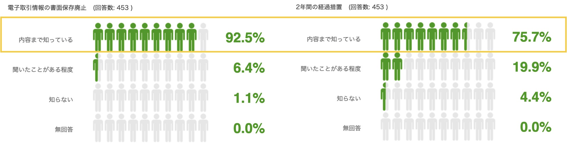 改正の直前に発表された上記の経過措置を受け、invox電子帳簿保存を運営する株式会社invoxはお客様より結局どのように対応すべきかという多くの声を伺い、企業がどのように対応していく予定か、実態を伺う緊急調査を実施いたしましたので、その調査結果のサマリーを発表いたします。