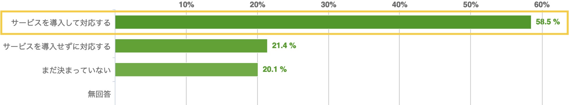 どのように対応する予定か伺ったところ、何らかサービスを導入して対応するという回答が58.5%でした。