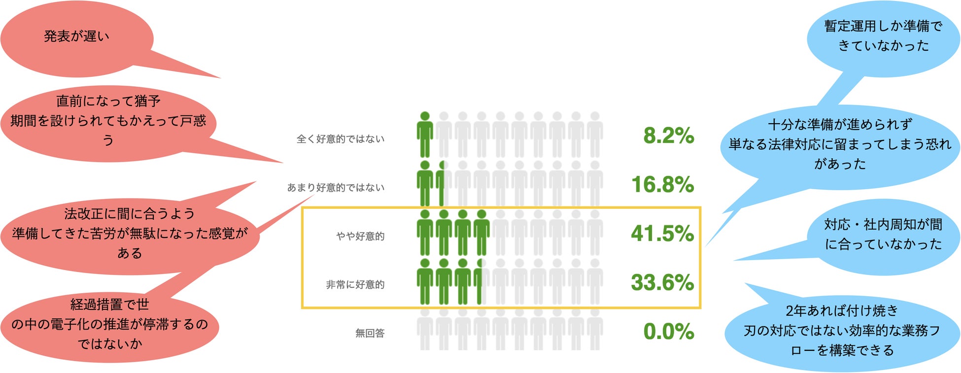 令和5年末までの2年間は、引き続き書面保存が可能になる2年間の経過措置について、あなたは好意的にとらえていますか。