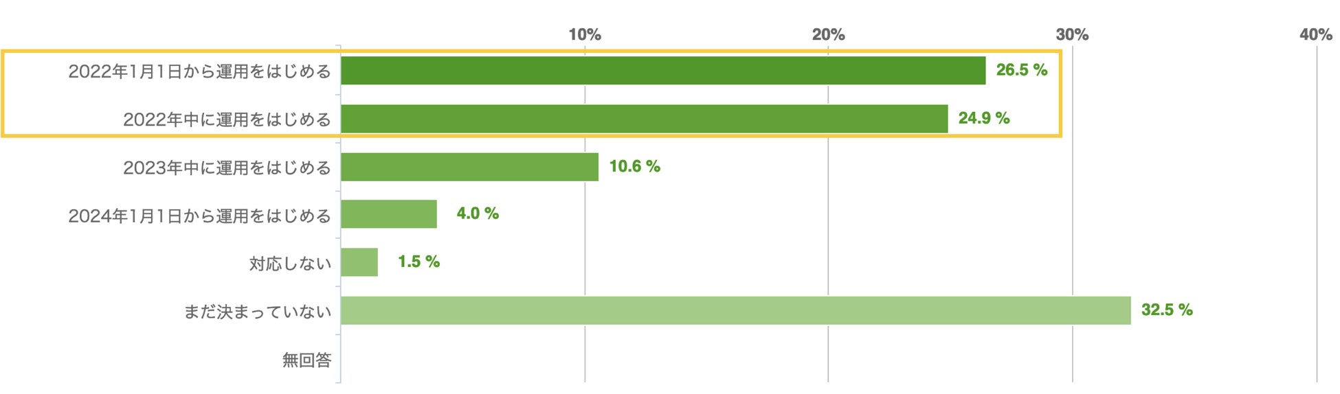 電子帳簿保存法の改正による電子取引情報の書面保存廃止、2年の猶予があっても【 51.4% 】は2022年中に運用をはじめる予定