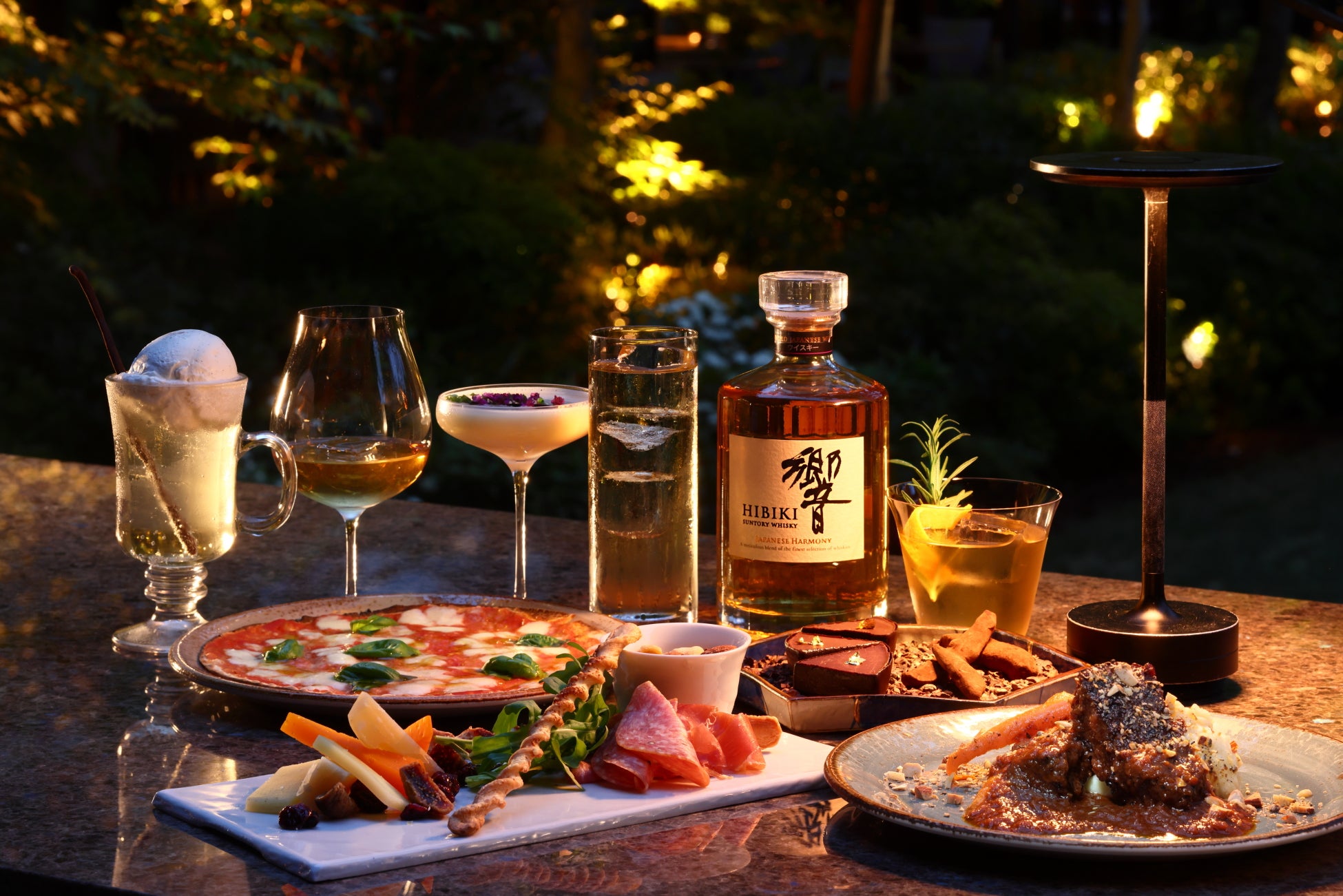 心地よい風が吹き抜けるテラスで、黄昏から夜へと移ろう庭園の景色とともに愉しむ「HIBIKI TWILIGHT HARMONY」。
