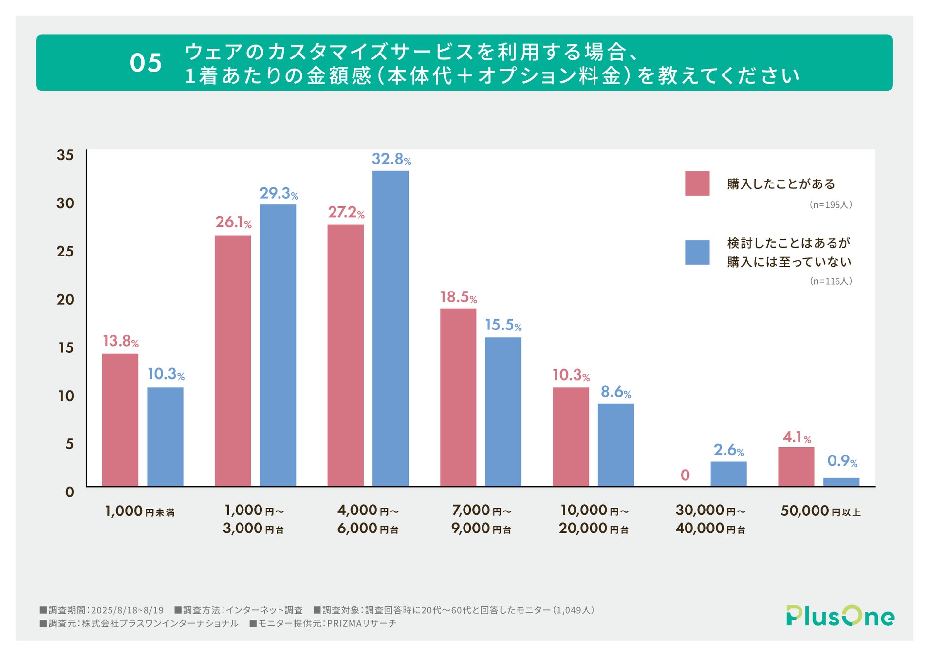 ウェアカスタマイズの金額感は、1,000円〜6,000円台と幅広く分布