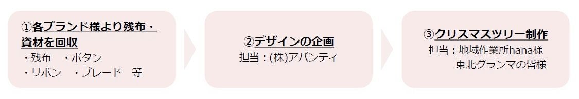 内容:各ブランドから集めた残布によって制作された クリスマスツリーの展示販売