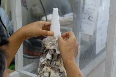 衣類の残布でつくる 「クリスマスツリー」は、プリスティン「リコットン・プロジェクト」取組みの一環となり、昨年より伊勢丹新宿店が参画しました。同プロジェクトにご賛同いただいた多くのブランドと共に、ブランドの枠を超え、社会課題の解決にむけたアクションとして実施しました。今年は参加ブランド数も増え、通常であれば廃棄されてしまう、それぞれのブランドの残布、資材を持ち寄り、かわいらしいクリスマスツリーを制作しました。また、昨年に引続き、本アイテムの制作は障がいのある方々が作業する福祉事業所「地域作業所hana」とのコラボ商品となります。