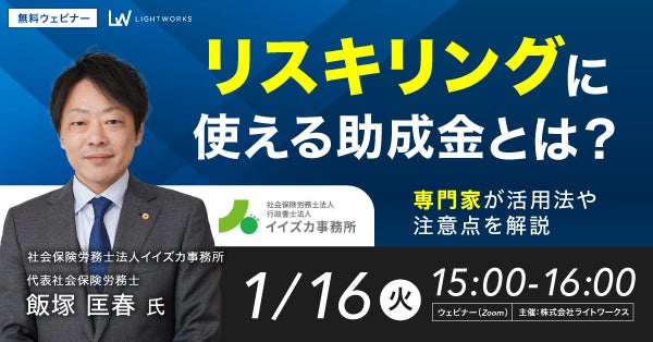 【1月16日(火)無料ウェビナー開催】リスキリングに使える助成金! 専門家が活用法や注意点を解説