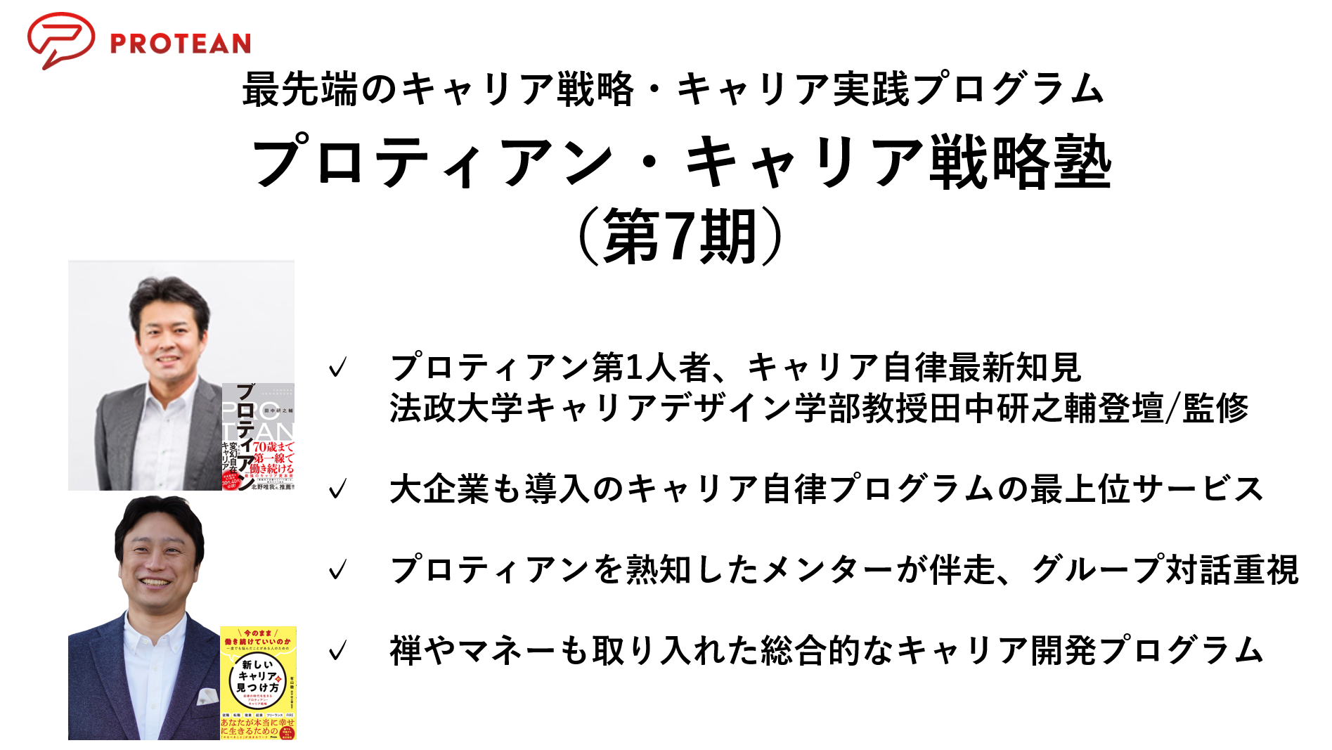 同時にプロティアン・キャリア戦略策定・実践を行うプロティアン戦略塾(第7期)の募集を開始