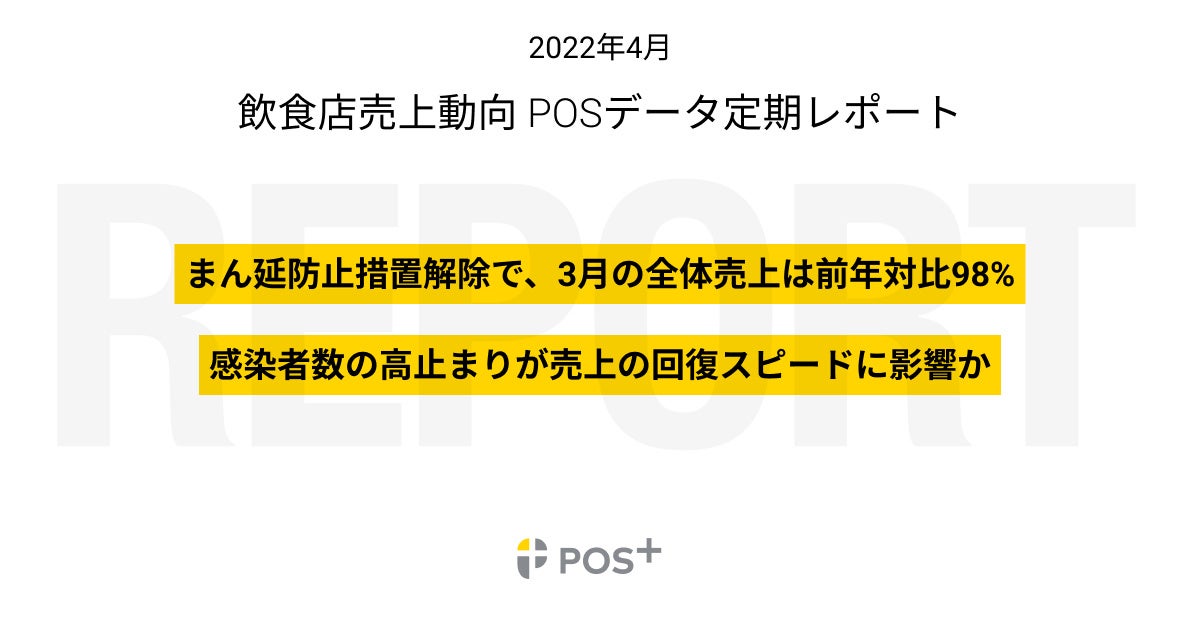 クラウド型モバイルPOSレジ「POS+(ポスタス)」、飲食店売上動向レポート2022年4月