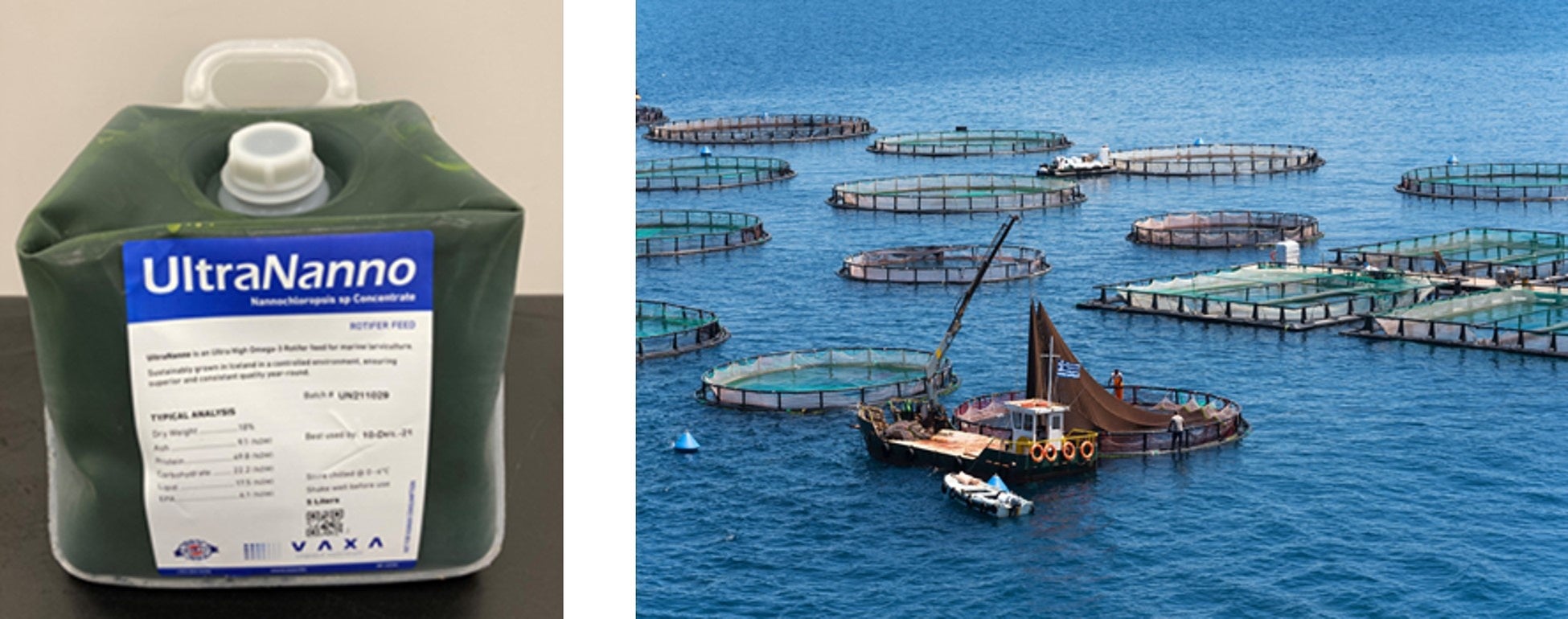 海産の微細藻類であるナンノクロロプシスは、水産養殖業界で稚魚の餌であるワムシの餌として長年にわたり使用されてきました。一方で、屋外池で生産されるナンノクロロプシスは、特に近年は地球温暖化の影響もあり、高温の夏期に品質が落ちるという課題に直面しています。この課題を解決するために、Vaxa社はアイスランドの生産拠点において、独自の閉鎖系培養技術を用いることで年間を通じて均一で、高品質なナンノクロロプシス「UltraNanno™」の開発と量産化に成功し、既に欧州で多くの実績があります。