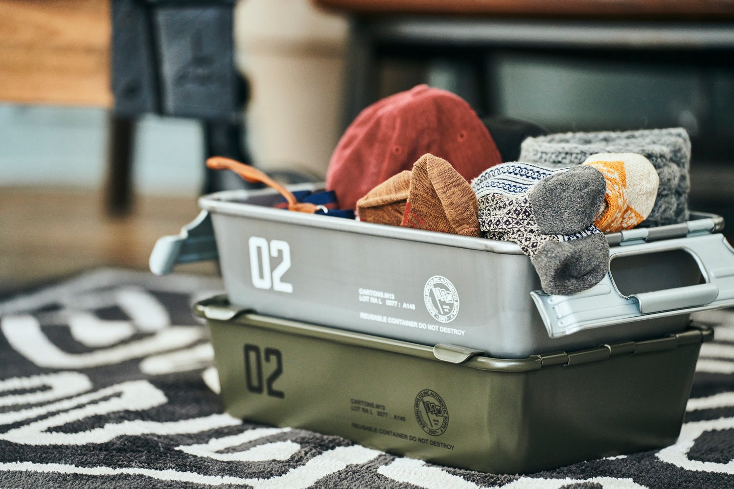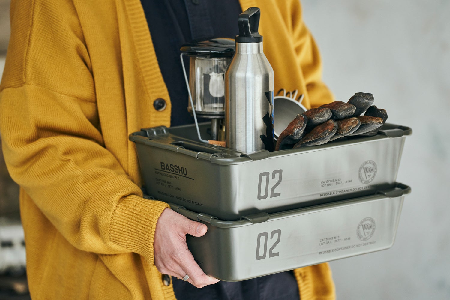 半世紀以上を経てもなお、世界のユーザーに愛される東洋スチールの工具箱。その中でも昔から町工場でネジなどの細かなパーツを入れるなどして、職人たちが愛用してきたM-8をBasShuが別注。丈夫でシンプルなデザインにミリタリーなロゴプリントを施した商品です。