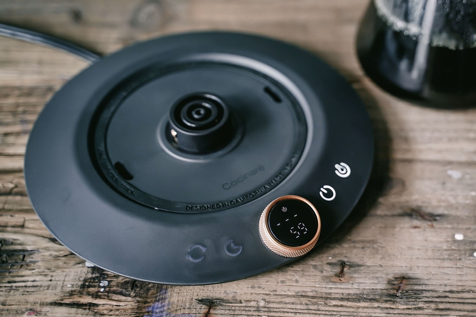 また1200Wのハイパワー設計で、水の状態から設定した温度まであっという間に沸騰。さらに、設定温度に到達時に音でお知らせするアラート機能や、設定した温度で保温する保温機能、ドリップの時間をパネルに表示して把握出来るストップウォッチ機能など、快適なドリップ体験をサポートする機能を搭載しています。