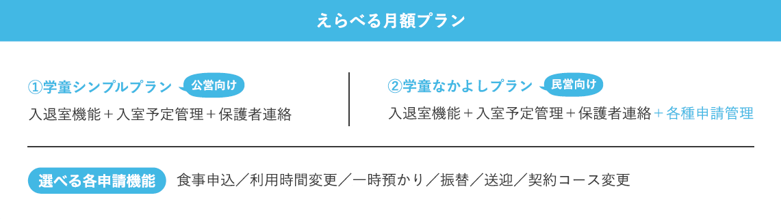 教室の運用に合わせて、2つの月額プランからお選びいただけます。