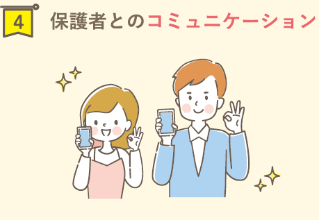 保護者と相互のやり取りができる、連絡帳機能※を利用いただけます。また、メッセージの一斉配信も可能。学年・学校ごとの選択配信や予約送信、開封確認機能も搭載しています。写真や書類データをファイル添付したり、アンケートを作成したり、さまざまな配信ができます。保護者は、メール・専用アプリ・LINEから選択してメッセージを受信可能です。