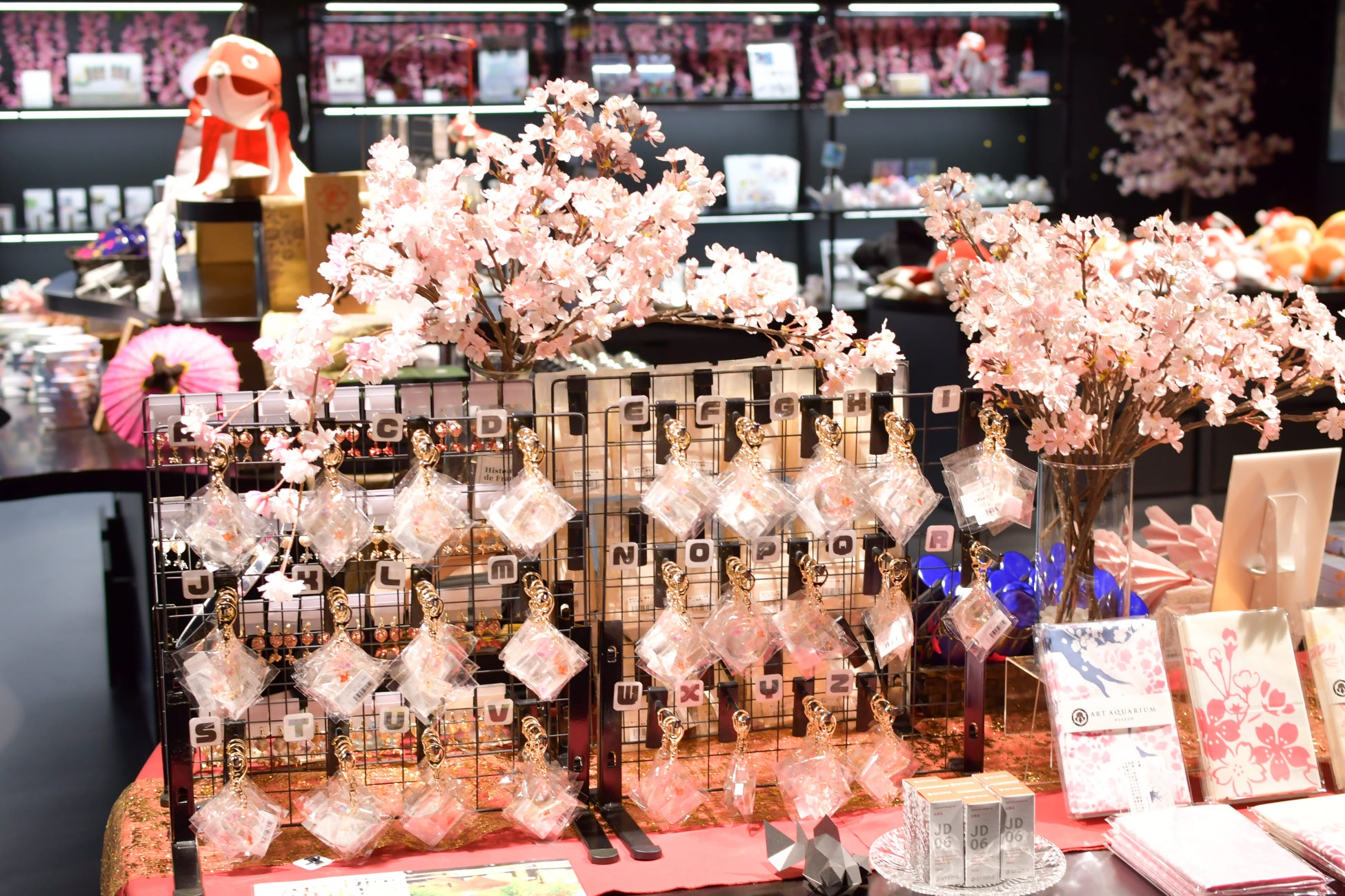 館内のミュージアムショップも期間中は“めっちゃ桜”になります。桜モチーフのアクセサリーやキーホルダー、和雑貨などが揃い、ショップ内も桜の彩りが広がります。2月より販売がスタートした館内の演出に使用しているアロマからは、桜企画用の香りもご用意いたしました。作品鑑賞とあわせ、ぜひショップでのお買い物もお楽しみください。