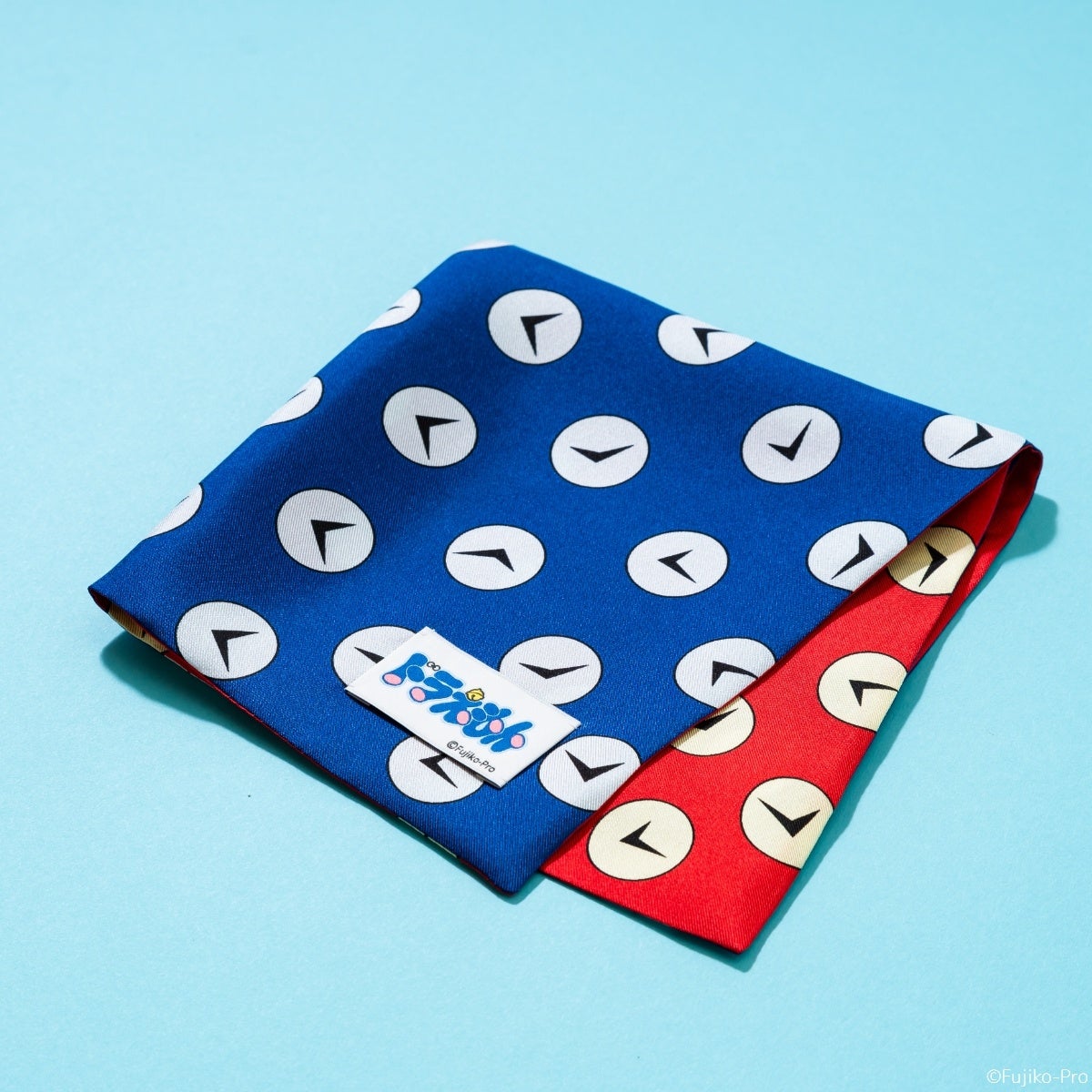 人気のひみつ道具「タイムふろしき」をモチーフにしたポケットチーフは、“本物”と同様のリバーシブル仕様。ネクタイとのコーディネイトを楽しむのも良し。ノーネクタイの時でも、ジャケットの胸元で存在感を放つ、遊び心満載のアイテムに。