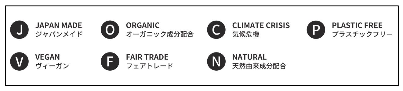 Ethical&SEAのどの商品がどんなエシカル消費に繋がっているのかを、わかりやすくアイコンで表記し、一目で判別できるようにしています。