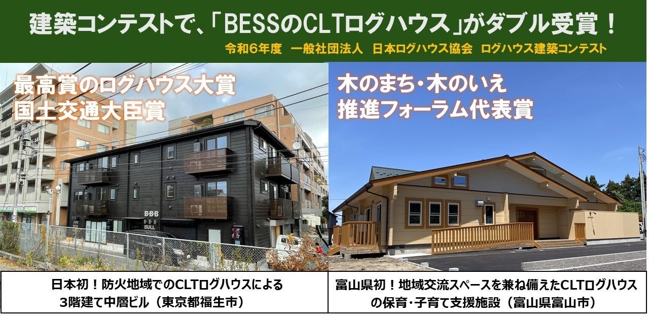 "非住宅木造建築でCLTログハウスに注目集まる!" 「BESSのCLTログハウス」2物件が、一社)日本ログハウス協会ログハウス建築コンテストで、国土交通大臣賞、及び特別賞をダブル受賞!